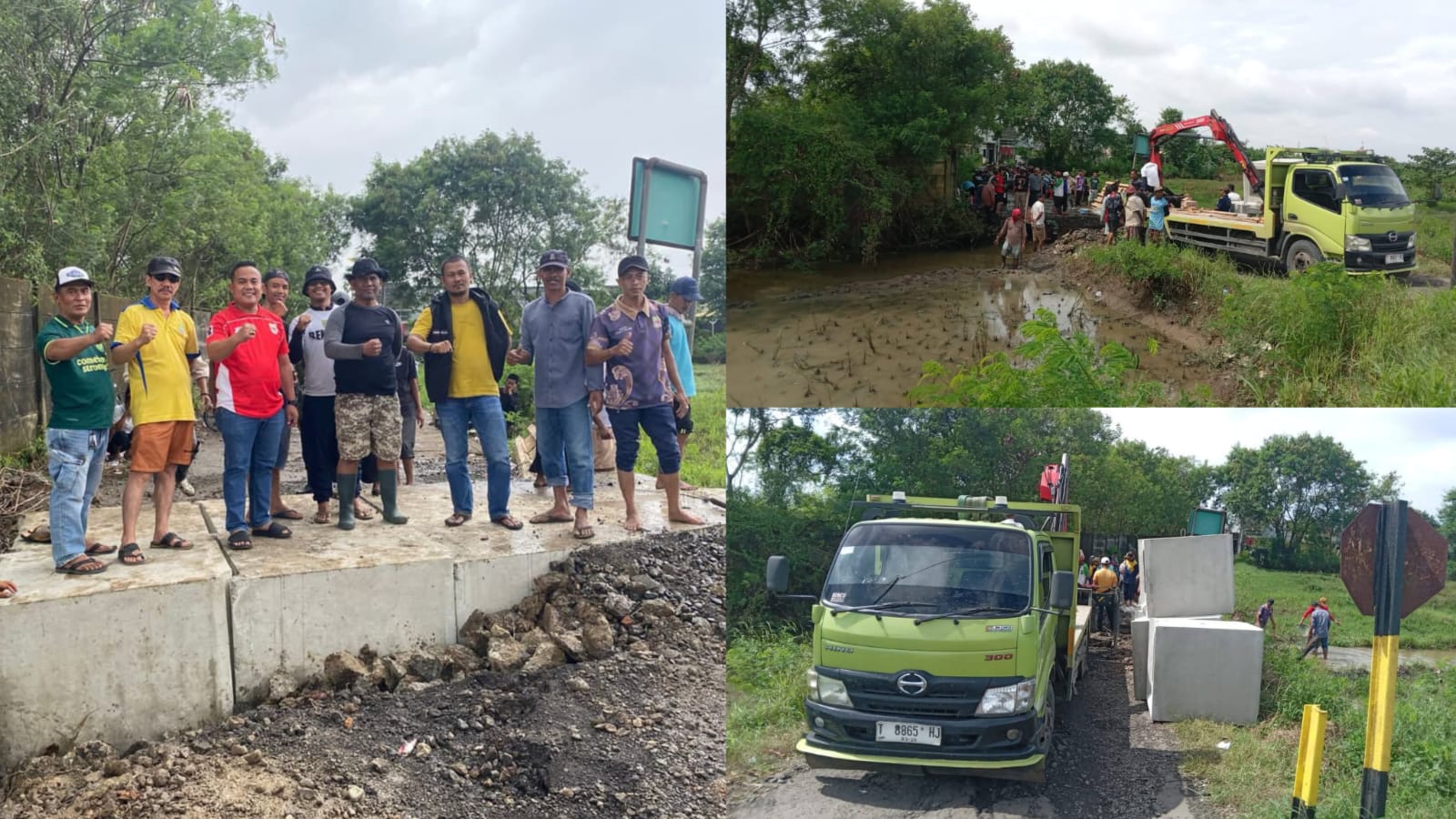 Upaya perbaikan mendapat dukungan dari pihak swasta, PT Jababeka, yang menyalurkan bantuan berupa delapan unit gorong-gorong (box culvert). Bantuan ini sangat membantu dalam mempercepat pemulihan akses jalan serta mengantisipasi genangan air saat curah hujan tinggi.