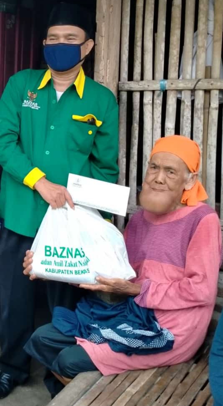 Baznas Kabupeten Bekasi, berikan bantuan berupa sembako dan uang tunai untuk biaya perawatan kesehatannya. Kamis (03/06/2021)