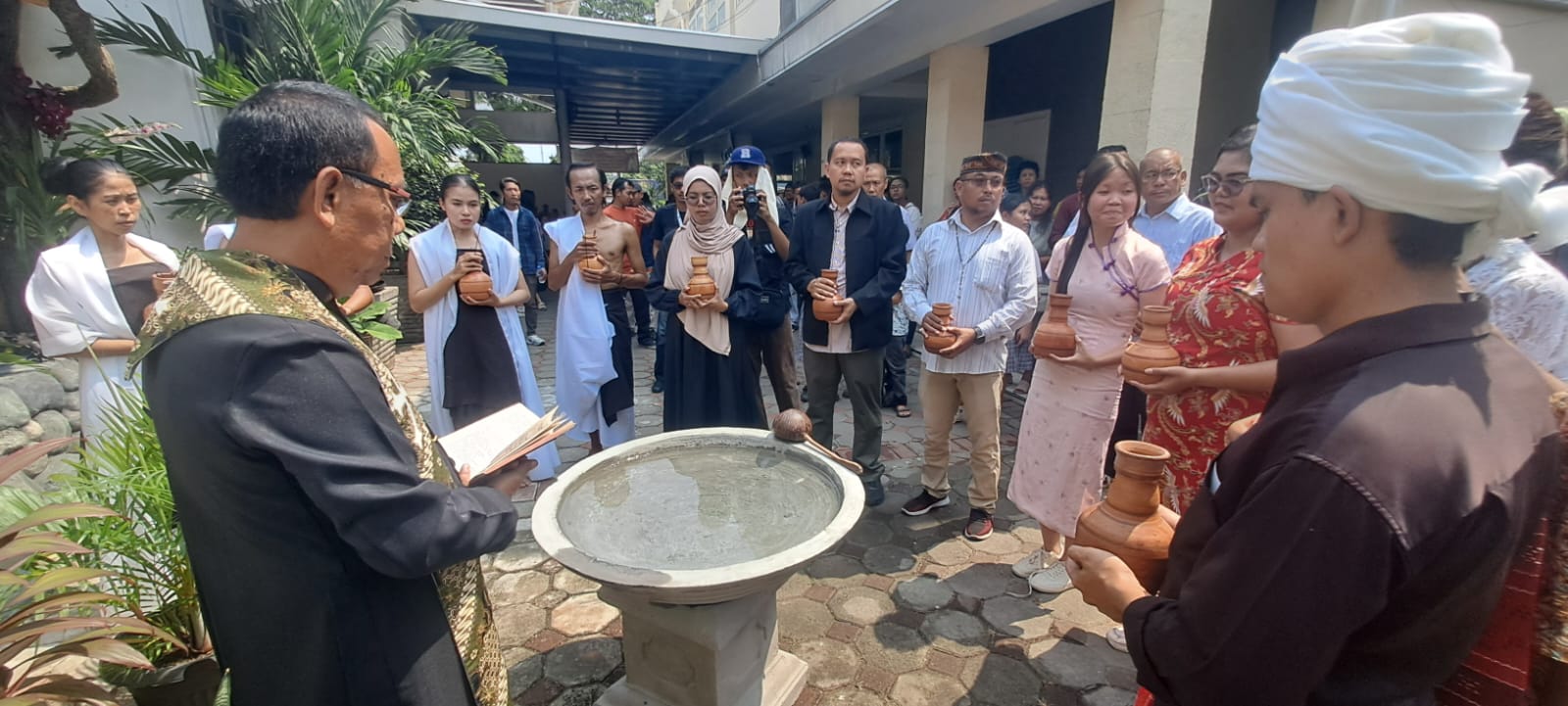 Kehadiran peserta kirab budaya lintas agama tersebut untuk mengambil air yang diberikan oleh Romo usai diberkati. Dan mereka juga mempertunjukkan dengan nyanyian-nyanyian .Kemudian air yang mereka ambil dituangkan ke tempat wadah menjadi satu.