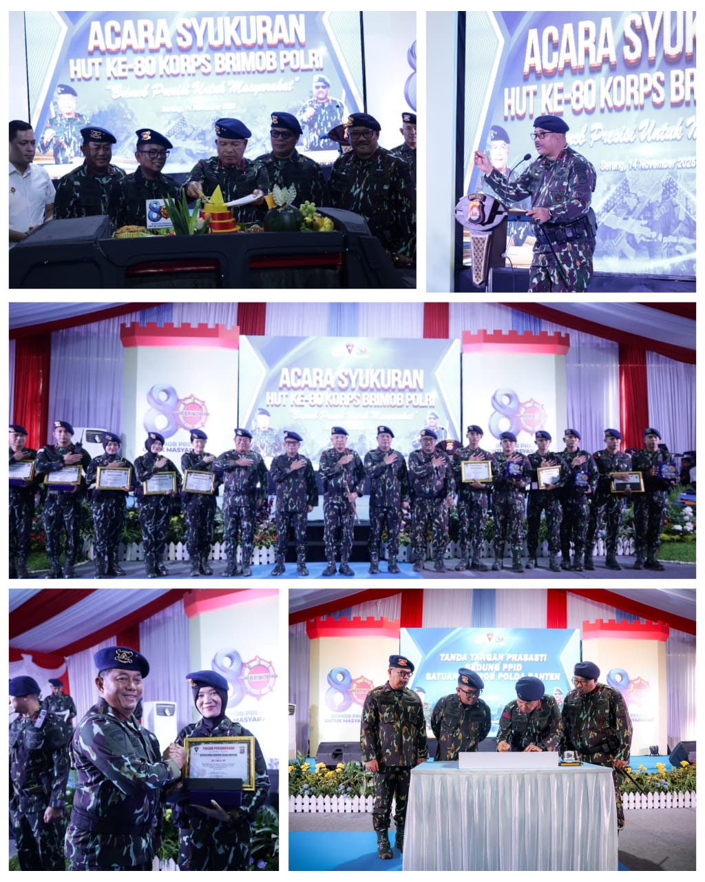 Kota Serang – kemajuanrakyat.id-Peringatan Hari Ulang Tahun (HUT) ke-80 Korps Brimob Polri digelar serentak di seluruh Indonesia. Di Banten, acara syukuran dipusatkan di Mako Satbrimob Polda Banten, Jumat (14/11/2025), dengan mengusung tema “Brimob Presisi untuk Masyarakat.”