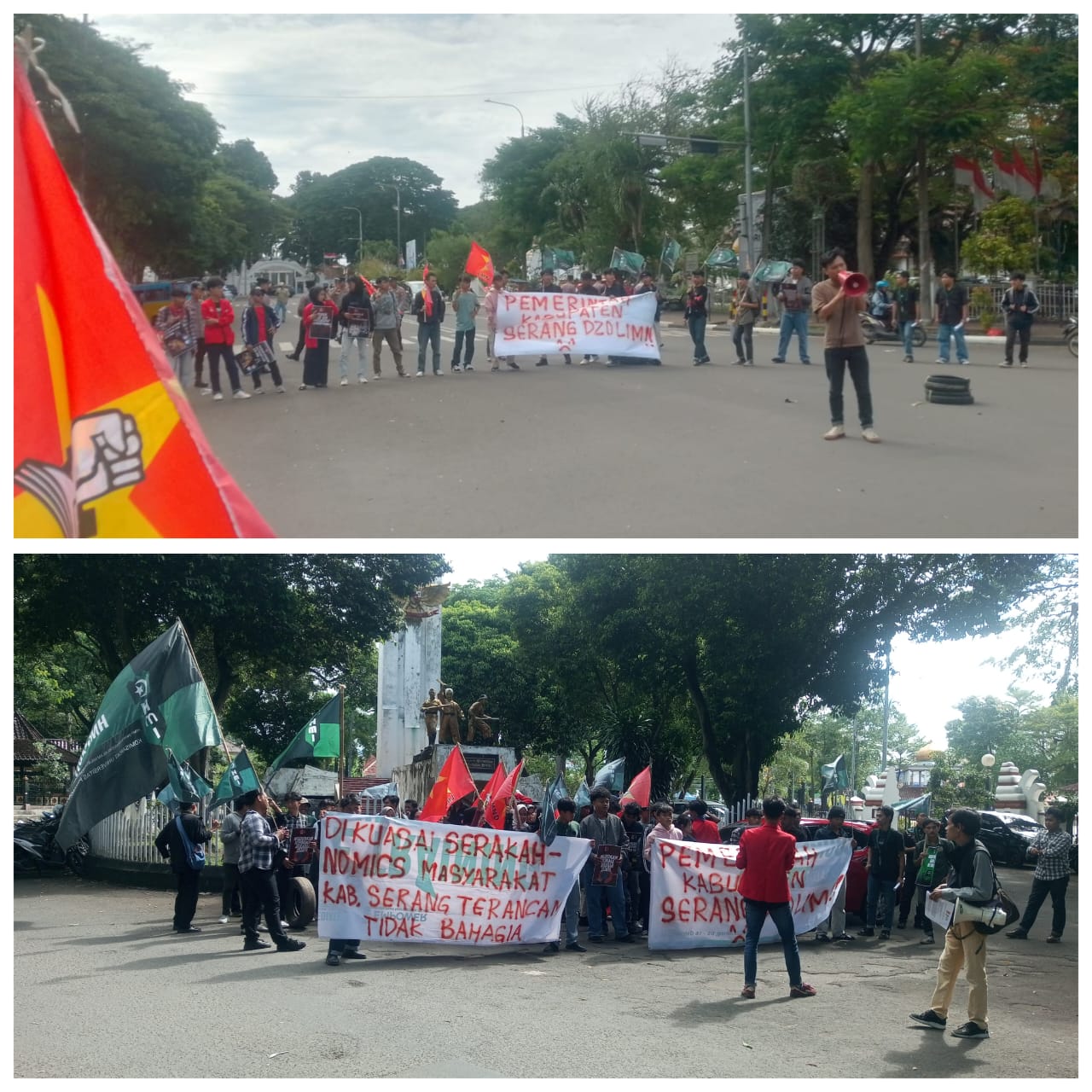 Serang– kemajuanrakyat. Id-Puluhan mahasiswa yang tergabung dalam Liga Mahasiswa Nasional untuk Demokrasi (LMND) Serang Raya bersama HMI MPO Cabang Serang melaksanakan aksi unjuk rasa di perempatan lampu merah Pemkab Serang, Kamis (23/10/2025). Dalam aksi tersebut, massa menyuarakan berbagai kritik tajam terhadap kinerja Pemerintah Kabupaten (Pemkab) Serang yang dinilai abai terhadap amanat konstitusi dan penderitaan rakyat.