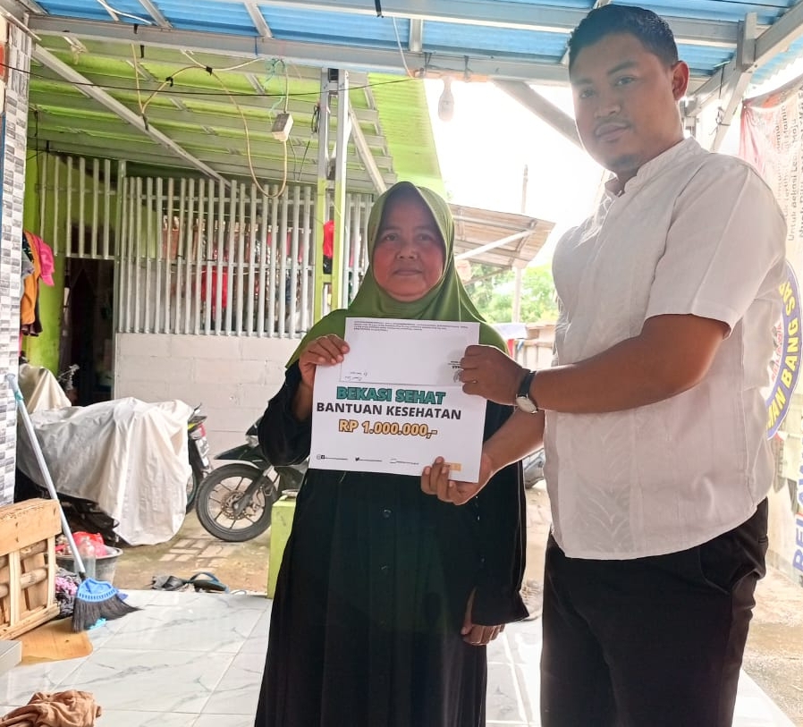 Bantuan senilai Rp1.000.000 tersebut diberikan kepada Siti Nurlaela (47), seorang ibu rumah tangga yang tengah membutuhkan perawatan kesehatan. Penyerahan bantuan dilakukan langsung oleh Hermanto, Staf BAZNAS Kabupaten Bekasi, di kediaman penerima manfaat.