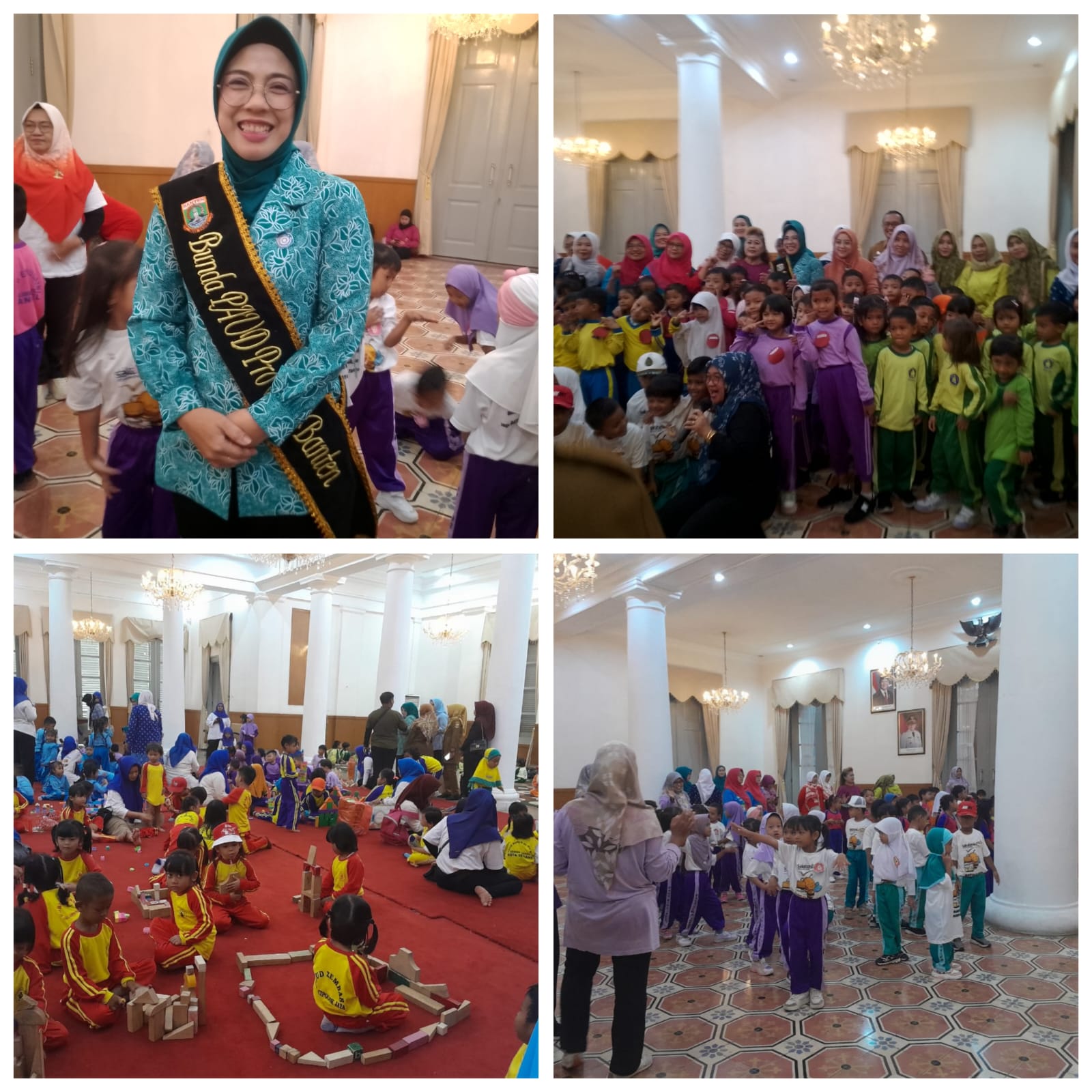 Kota Serang– kemajuanrakyat.id-Bunda PAUD Provinsi Banten, Tinawati Andra Soni, menghadiri kegiatan Gebyar Stimulasi Anak Usia Dini yang digelar di Gedung Negara, Senin (11/11/2025). Acara diikuti oleh anak-anak PAUD, guru pendamping dan para orang tua yang antusias menyaksikan berbagai rangkaian kegiatan edukatif dan kreatif.