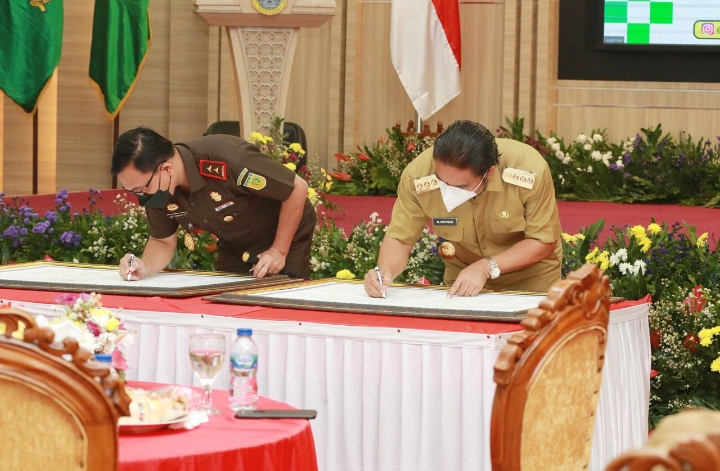 Penandatangan Pakta Integritas dilaksanakan Kepala Kejaksaan Tinggi Banten Leonard Eben Simanjuntak dan Penjabat Gubernur Banten Al Muktabar.